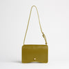 Val features three separate interior compartments, and a cover flap that locks closed with our custom solid brass hexagonal hardware. Organized and minimalist with a winged bottom edge, Val has an adjustable length strap with solid brass buckle that allows for wear high across the chest, over the shoulder or lower as a traditional crossbody.